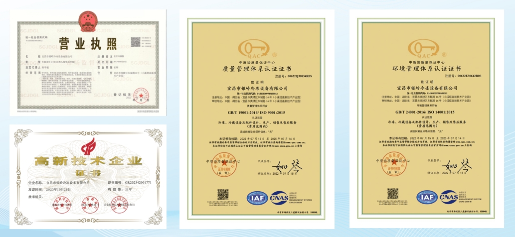 公司拥有焓差实验室、冷凝机组实验室、冷库长期运行实验室、在线检测实验室等实验室,实验配备设施达到国内先进水平,并得到国家相关权威机构认定。已有全国生产许可证,GC2压力管道证书等国家级证书,为国家高新技术企业且专利技术达到了十几项。
